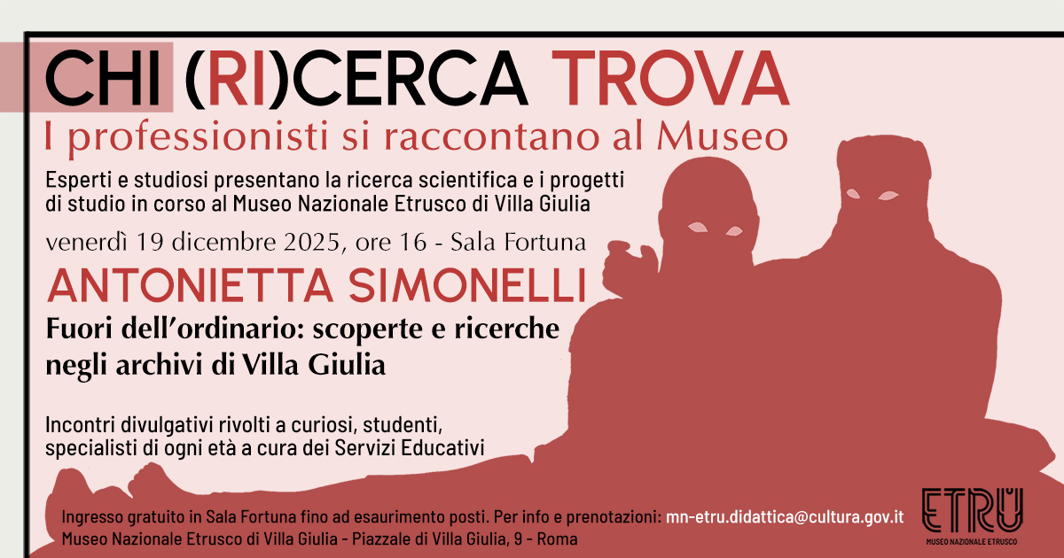 Ultimo appuntamento dell'anno di Chi (Ri)cerca Trova, il ciclo di conferenze che presenta la ricerca scientifica e i progetti di studio che coinvolgono il Museo Nazionale Etrusco di Villa Giulia, a cura dei Servizi Educativi del Museo.