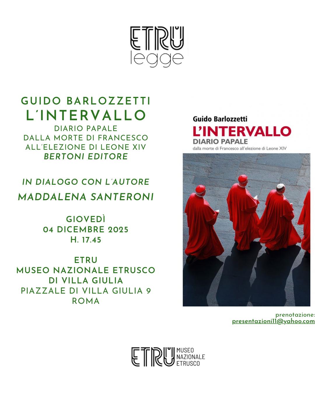 Per il ciclo ETRUlegge, giovedì 4 dicembre alle ore 17.45 Museo ETRU ospita la presentazione del volume "L' Intervallo" di Guido Barlozzetti*.