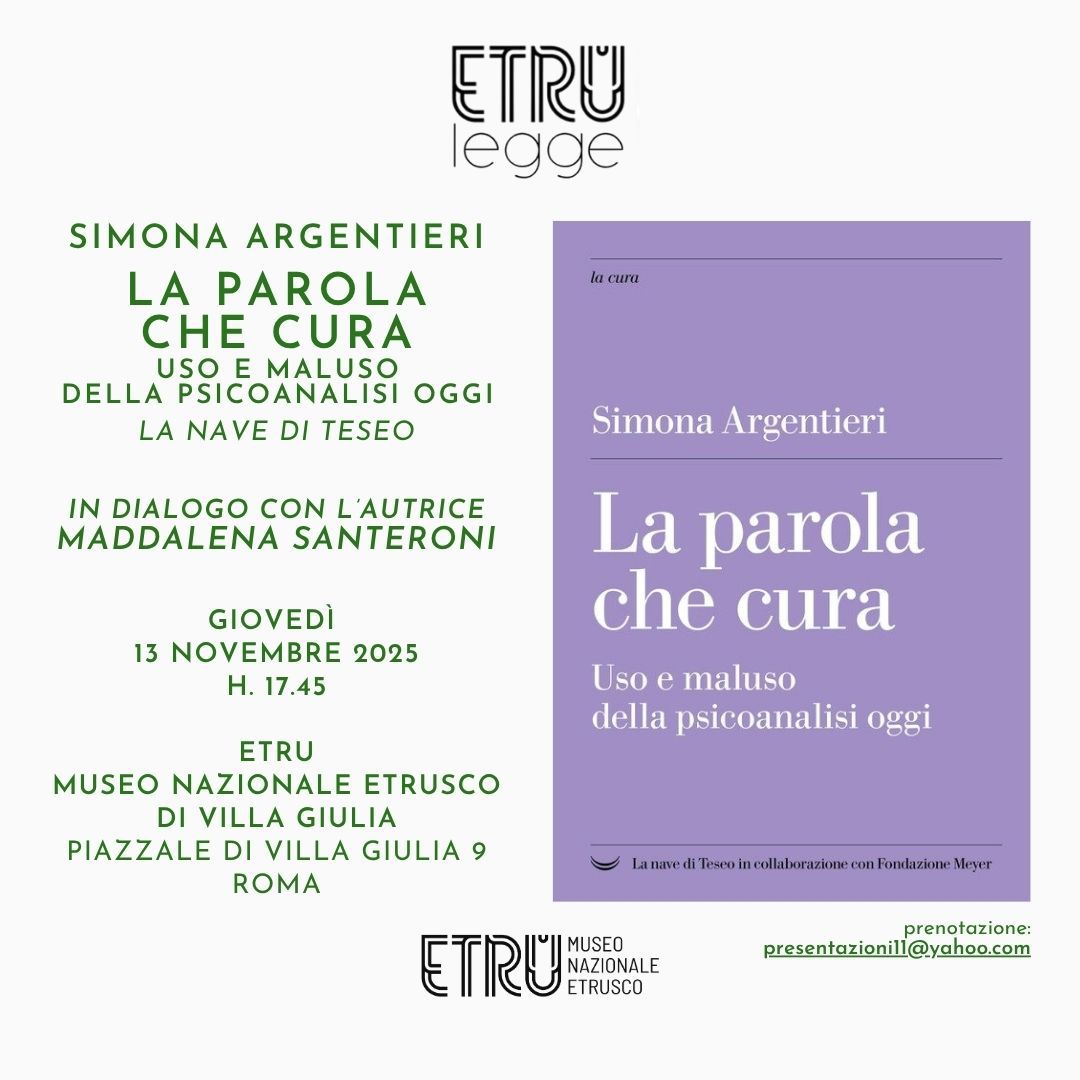 Per il ciclo ETRUlegge, giovedì 13 novembre alle ore 17.45 Museo ETRU ospita la presentazione del volume "La parola che cura. Uso e maluso della psicoanalisi oggi" di Simona Argentieri*.