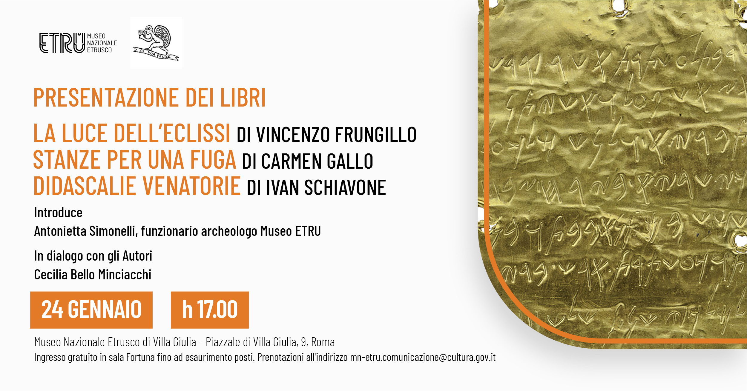 Prenotazione consigliata all'indirizzo mail: mn-etru.comunicazione@cultura.gov.it