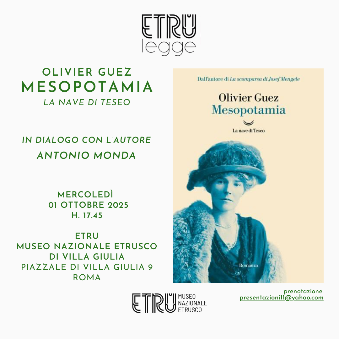 Per il ciclo ETRUlegge, mercoledì 1 ottobre alle ore 17.45 Museo ETRU ospita la presentazione del volume "Mesopotamia" di Olivier Guez*.
