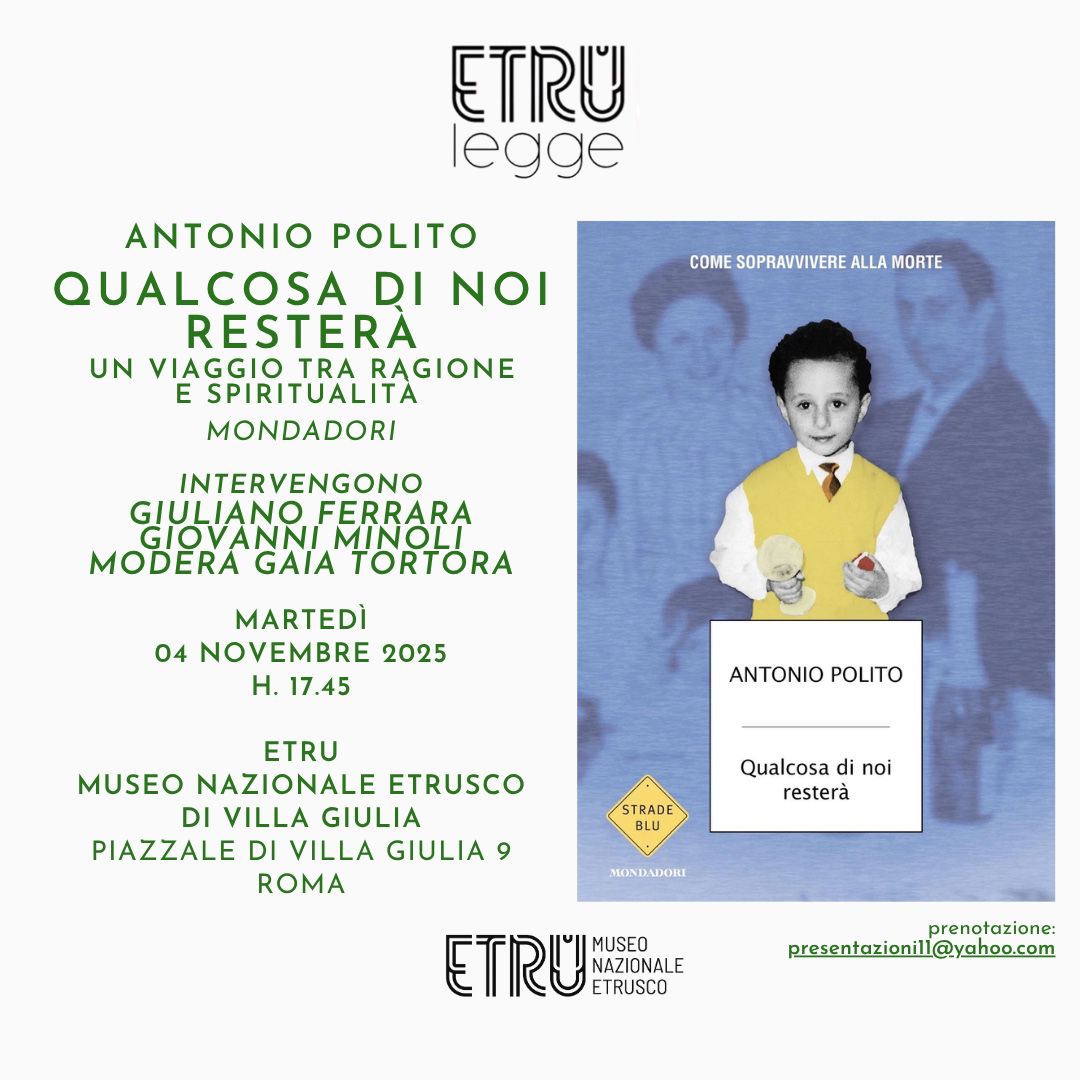 Per il ciclo ETRUlegge, martedì 4 novembre alle ore 17.45 Museo ETRU ospita la presentazione del volume "Qualcosa di noi resterà. Un viaggio tra ragione e spiritualità" di Antonio Polito*.