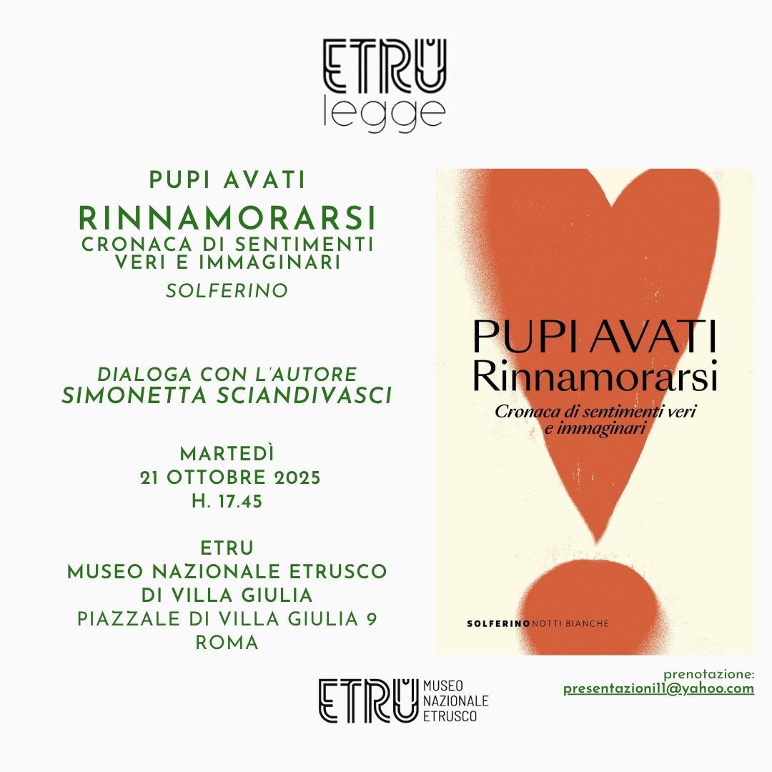 Per il ciclo ETRUlegge, martedì 21 ottobre alle ore 17.45, Museo ETRU ospita la presentazione del nuovo libro di Pupi Avati "Rinnamorarsi. Cronaca di sentimenti veri e immaginari".