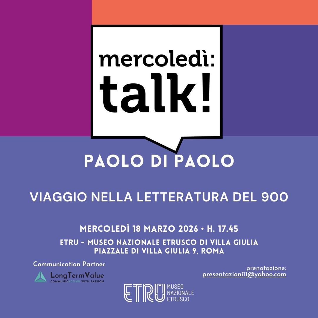 Torna l'appuntamento con MERCOLEDì TALK! il ciclo di incontri ideato dall'Associazione Amici dell'Arte moderna a Valle Giulia, che vede protagonisti grandi nomi della cultura e del pensiero italiano per svelare ciò che resta nascosto tra le pieghe della vita, della memoria, della cronaca.
