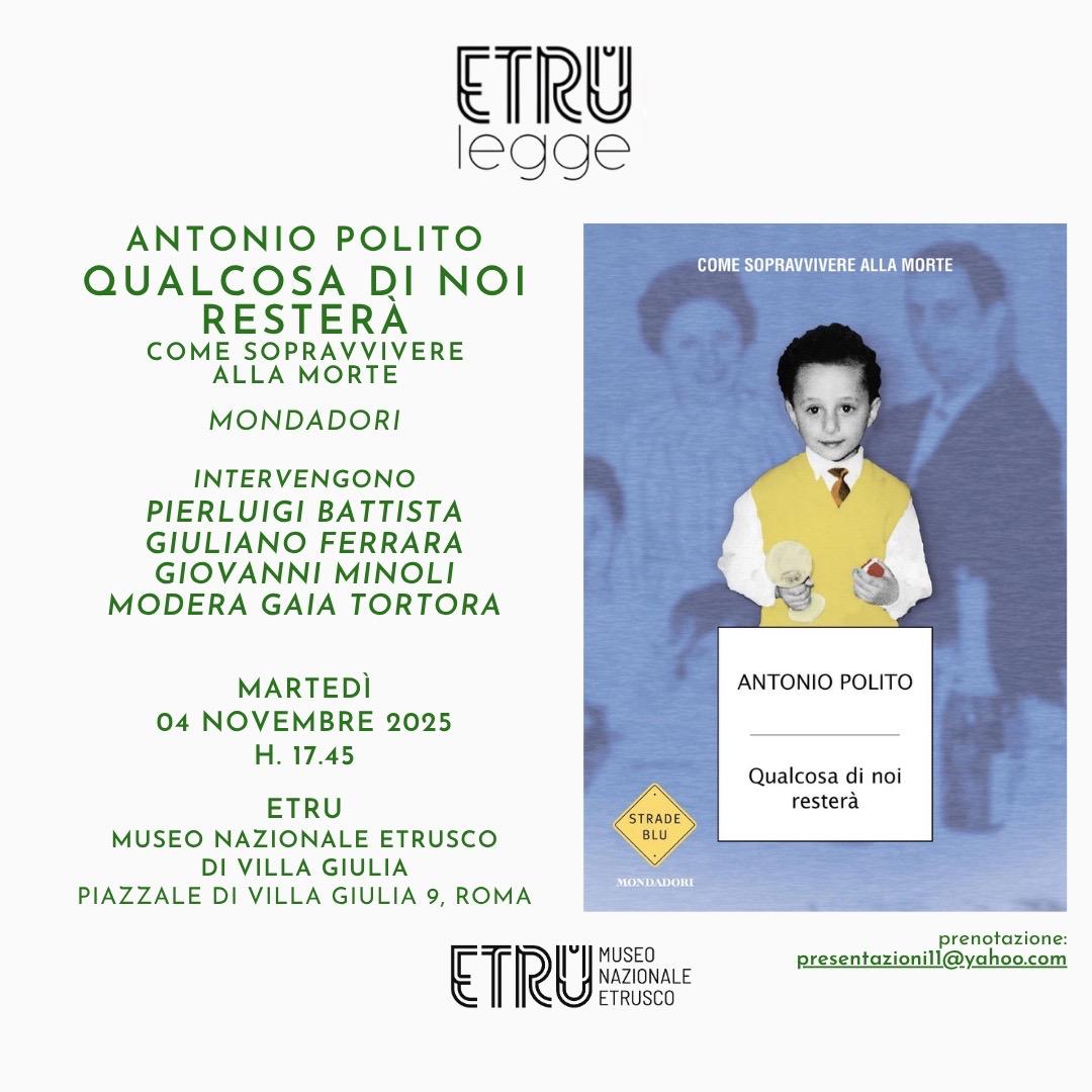 Per il ciclo ETRUlegge, martedì 4 novembre alle ore 17.45 Museo ETRU ospita la presentazione del volume "Qualcosa di noi resterà. Un viaggio tra ragione e spiritualità" di Antonio Polito*.