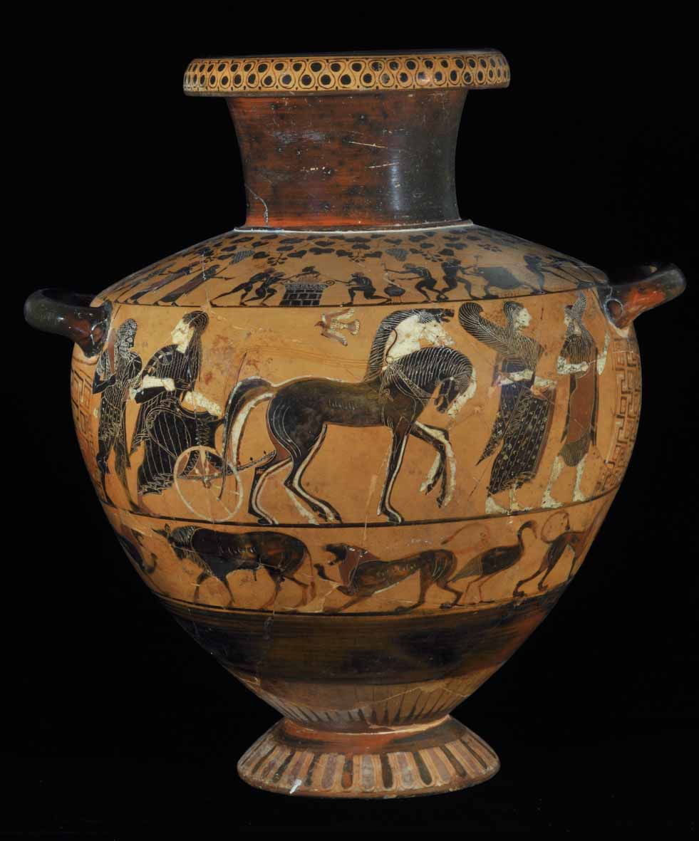 L'Hydria Ricci (530-520 a.C.), proviene da una tomba della necropoli della Banditaccia di Cerveteri ed è ritenuta opera di un pittore del nord della Ionia (attuale Turchia settentrionale) denominato Pittore del Louvre E 739, trapiantato in Etruria poco dopo la metà del VI sec. a.C. e in cui è forse riconoscibile uno degli artigiani focei presenti a Cerveteri dopo la battaglia di Alalia (del Mare Sardo) che nel 540 a.C. aveva opposto i Focei agli Etruschi alleati con i Cartaginesi per il controllo del Mar Tirreno.